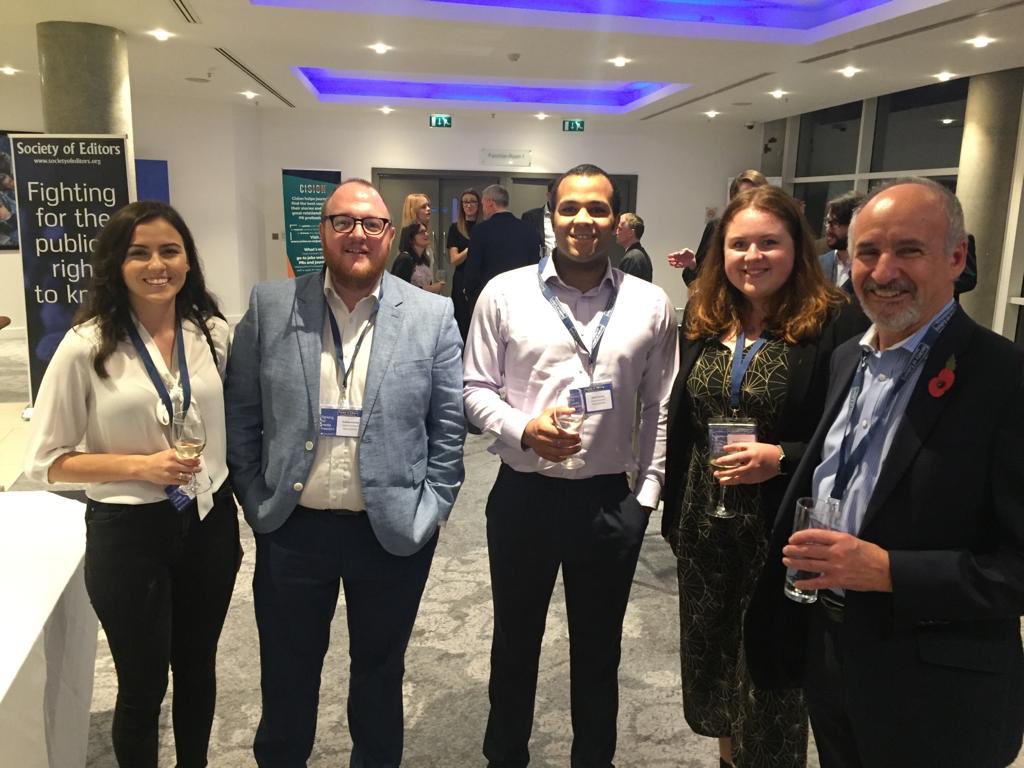 NETWORKING: (L-R) News Associates trainees Olivia, Julian and Marthe with McNae’s Essential Law for Journalists co-author Mike DoddThis year the annual conference took place at the luxury Lowry Hotel and a number of our fast-track and undergraduate trainees spent time brushing shoulders with many leading figures from all sectors of the media.