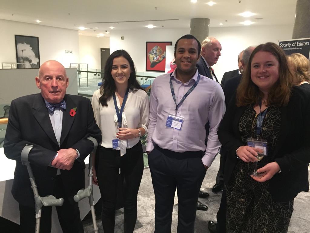 CHEESE: (L-R) Olivia, News Associates head of journalism training Manchester Andrew Greaves, Julian and Marthe with Evening Standard managing editor Doug WillsJulian said: “I had a great time attending the editors conference, especially getting to speak with some of the best journalists in the country and listening to their inside knowledge into the industry was invaluable.